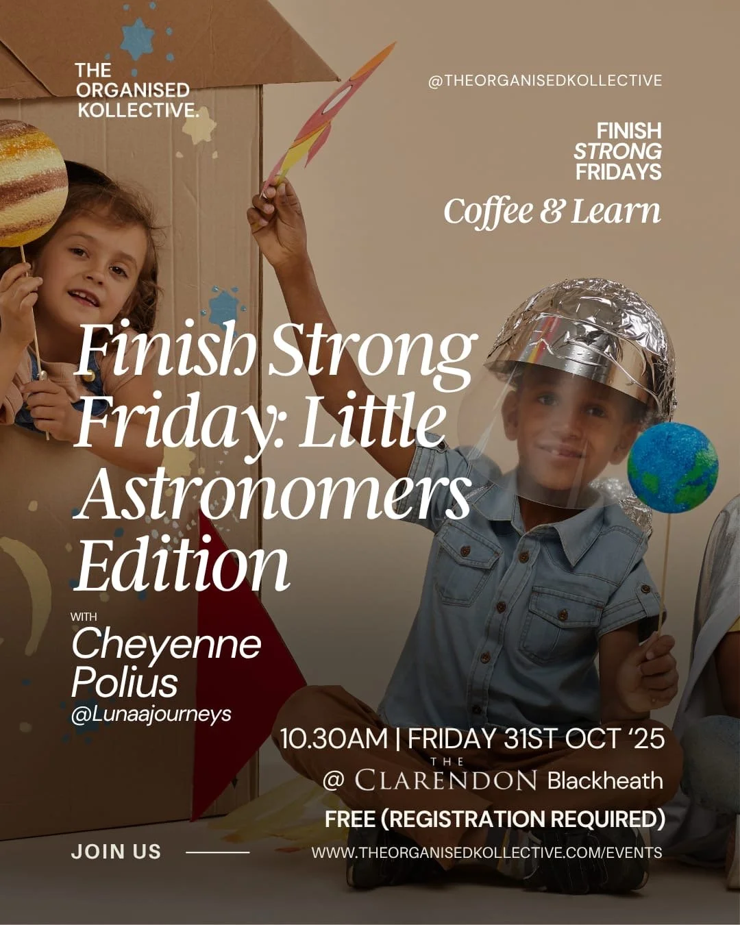 JOIN US FOR A SPACE-THEMED FINISH STRONG FRIDAY COFFEE & LEARN SESSION, PERFECT FORTHE WHOLE FAMILY.
